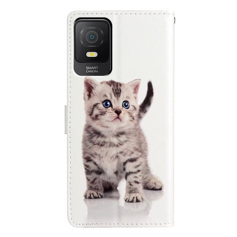 Θήκη τηλεφώνου από δέρμα με σχέδιο για TCL 403 (Μικρή ριγέ γάτα)