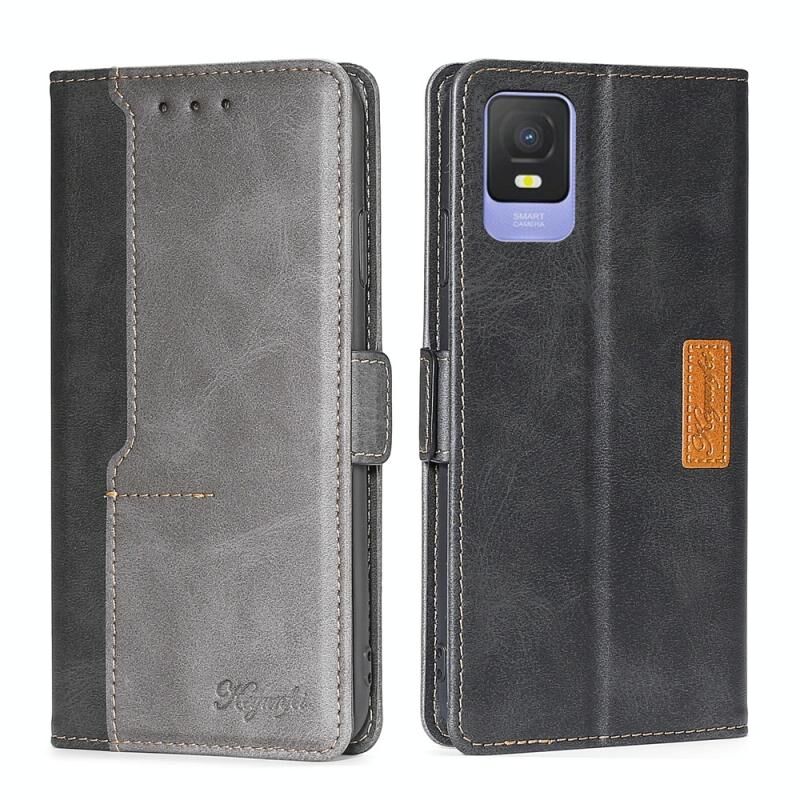 Για TCL 403 Αντίθετο χρώμα πλευρά πόρπη δερμάτινη θήκη τηλεφώνου (μαύρο + γκρι)