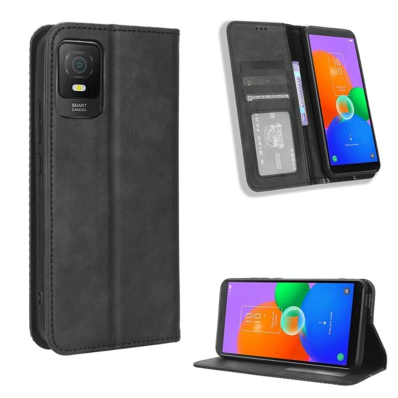 Για TCL 403 Μαγνητική πόρπη ρετρό υφή δερμάτινη θήκη τηλεφώνου (Μαύρο)