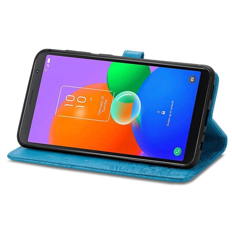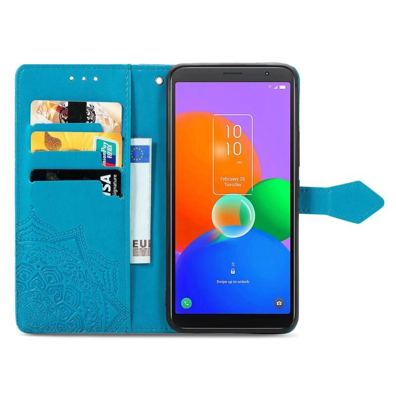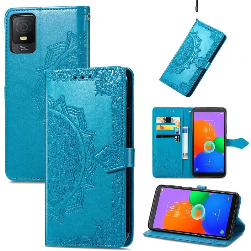 Για TCL 403 Mandala λουλούδι ανάγλυφο δερμάτινη θήκη τηλεφώνου (μπλε)