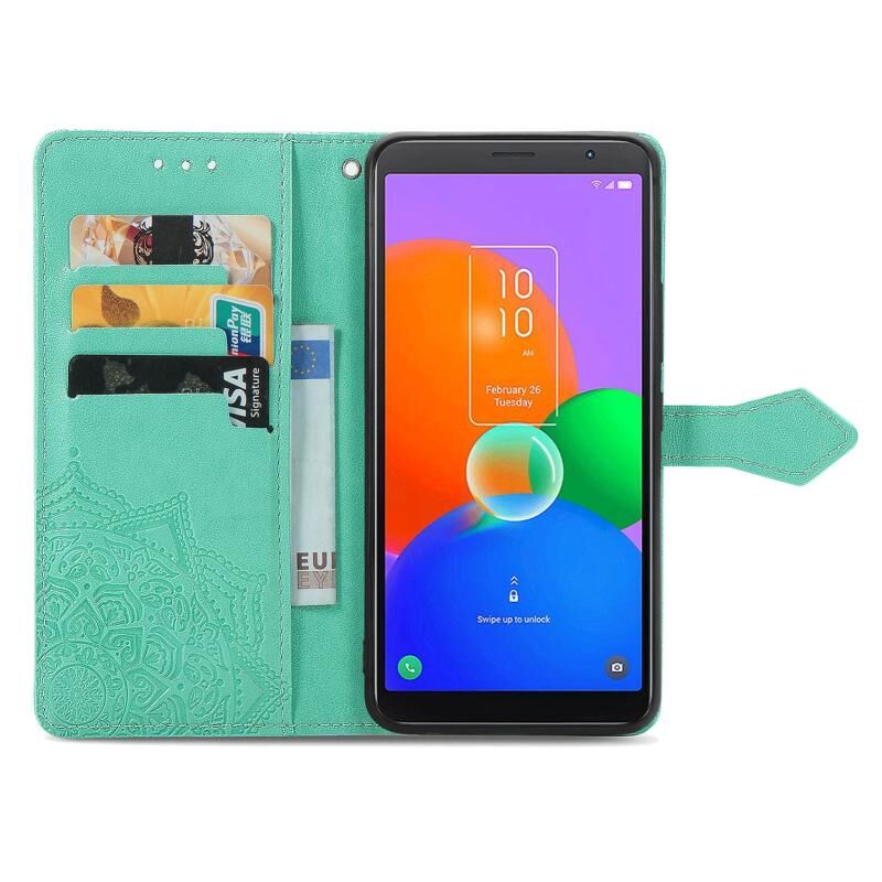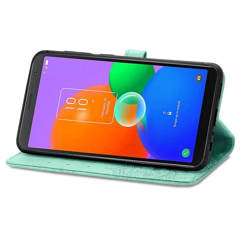 Για TCL 403 Mandala λουλούδι ανάγλυφο δερμάτινη θήκη τηλεφώνου (πράσινο)