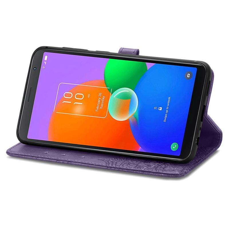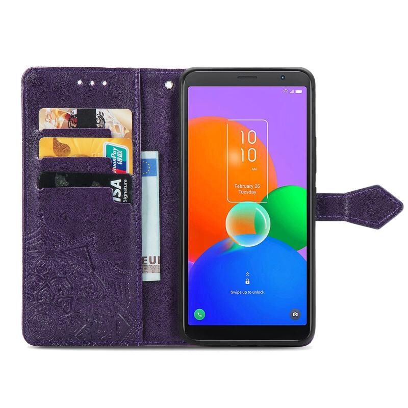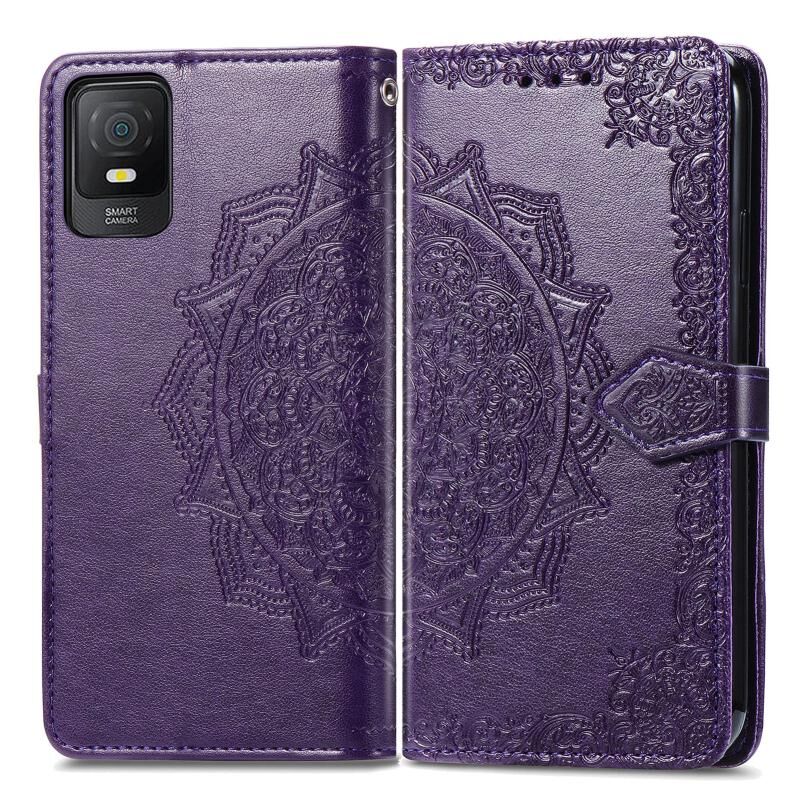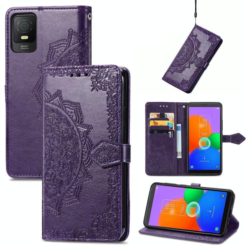 Για TCL 403 Mandala λουλούδι ανάγλυφο δερμάτινη θήκη τηλεφώνου (μωβ)