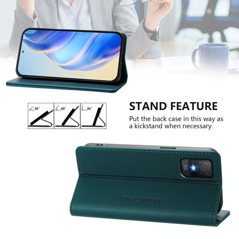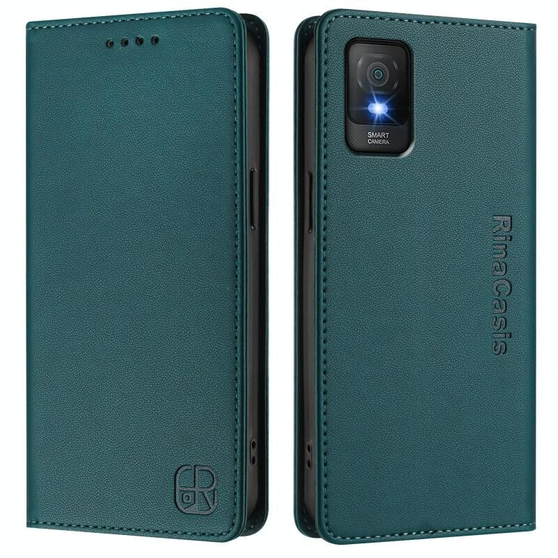 Θήκη τηλεφώνου δερμάτινη με μαγνητική απορρόφηση και RFID για TCL 403 RC01, διπλού τύπου (Μέντας Πράσινο)