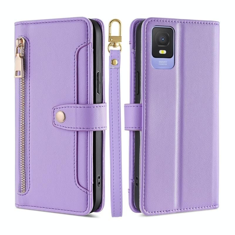 Για TCL 403 Πρόβατα Υφή Cross-body φερμουάρ πορτοφόλι δερμάτινη θήκη τηλεφώνου (μωβ)