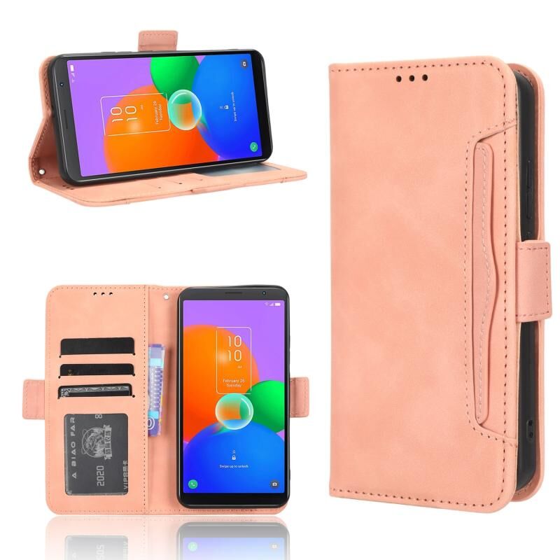 Για TCL 403 δέρμα αίσθηση μοσχάρι υφή κάρτα υποδοχές δερμάτινη θήκη τηλεφώνου (ρόζ)