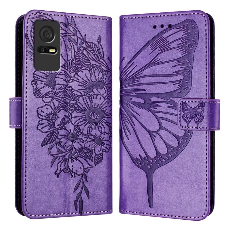 Θήκη τηλεφώνου από δέρμα με ανάγλυφο σχέδιο πεταλούδας για TCL 405 / 406 / 408 (Μαύρο)