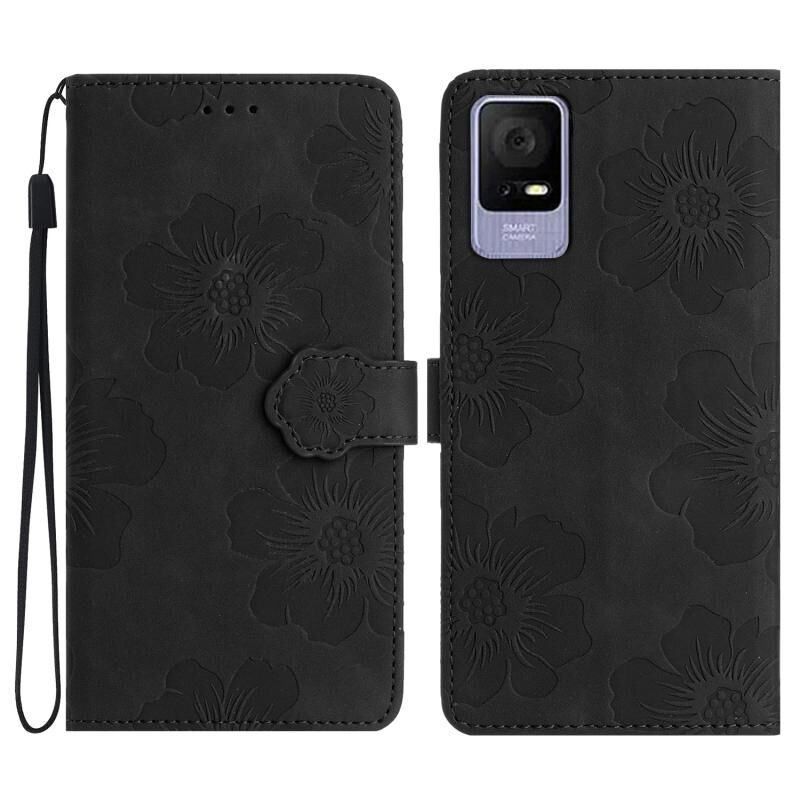 Για TCL 405 / 406 / 408 λουλούδι ανάγλυφο μοτίβο δερμάτινη θήκη τηλεφώνου (μαύρο)
