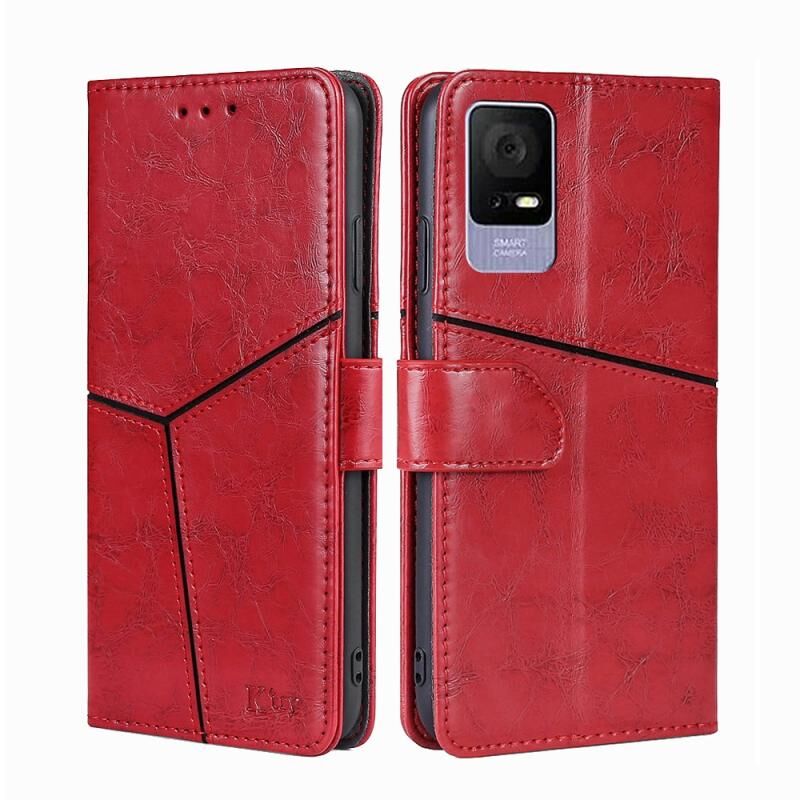 Για TCL 405 / 406 / 408 γεωμετρική ραφή οριζόντια Flip δερμάτινη θήκη τηλεφώνου (κόκκινο)