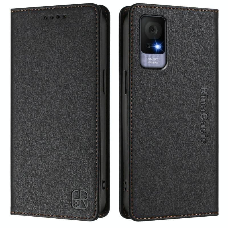 Θήκη τηλεφώνου δερμάτινη με μαγνητική απορρόφηση και τεχνολογία RFID, διπλού τύπου για TCL 405 / 406 / 408 RC01 (Μέντας Πράσινο)