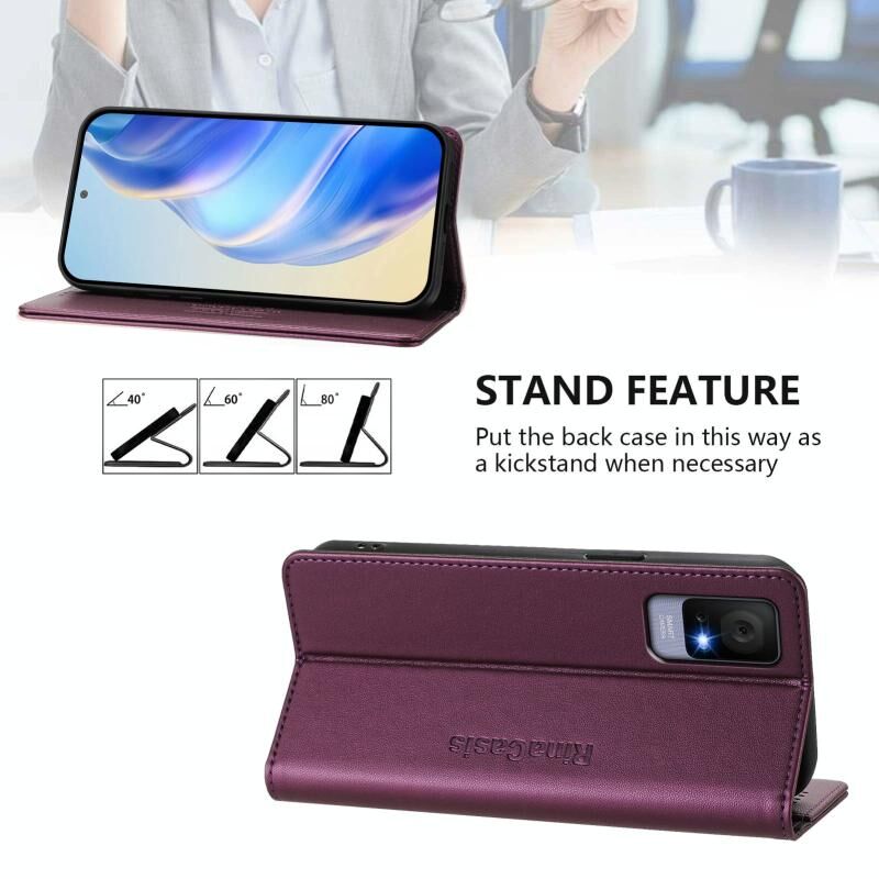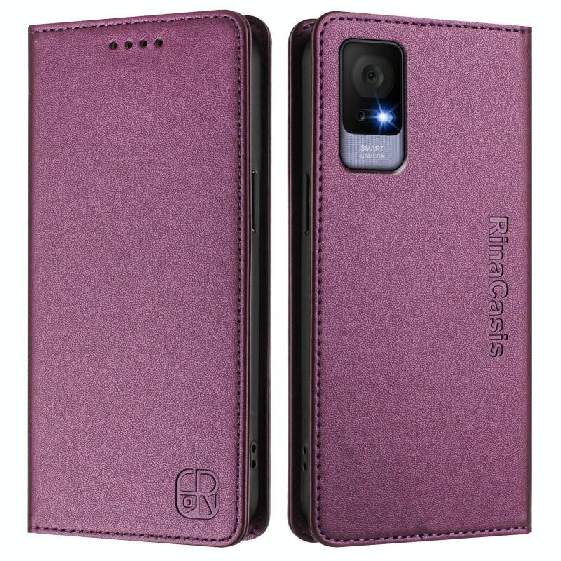 Θήκη τηλεφώνου από δέρμα με μαγνητική απορρόφηση και τεχνολογία RFID, διπλού τύπου, για TCL 405 / 406 / 408 RC01 (Βιολετί)