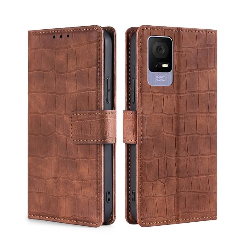 For TCL 405 / 406 / 408 Skin Feel Crocodile Magnetic Clasp Leather Phone Case(Brown)