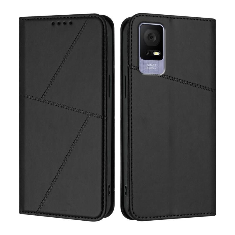 For TCL 405 / 406 / 408 Strong Magnetic Frosted Flip Leather Phone Case(Black)