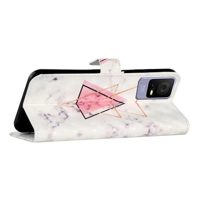Θήκη τηλεφώνου δερμάτινη με ανάγλυφο σχέδιο λαδιού 3D για TCL 405 / 406 (Μαρμάρινο Τριγωνικό)