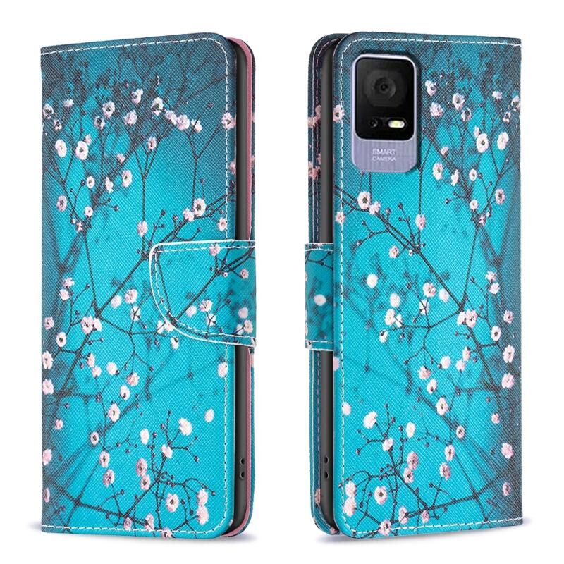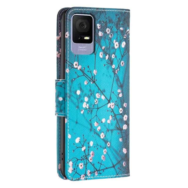Θήκη τηλεφώνου από δέρμα με έγχρωμο σχέδιο (λουλούδι δαμασκηνιάς) για TCL 405.