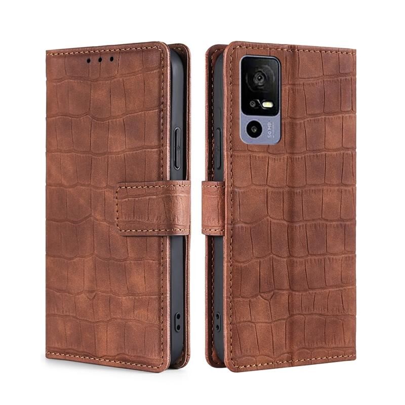 Θήκη τηλεφώνου δερμάτινη με μαγνητικό κούμπωμα, υφή κροκόδειλου για TCL 40R 5G (Καφέ)