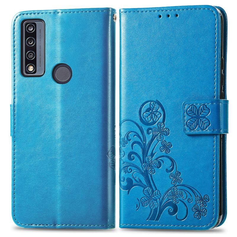 Για TCL 4X 5G τετράφυλλο κούμπωμα ανάγλυφο πόρπη δερμάτινη θήκη τηλεφώνου (μπλε)