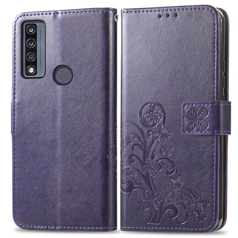 Για TCL 4X 5G τετράφυλλο κούμπωμα ανάγλυφο πόρπη δερμάτινη θήκη τηλεφώνου (μωβ)