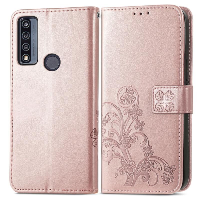 Για TCL 4X 5G τετράφυλλο κούμπωμα ανάγλυφο πόρπη δερμάτινη θήκη τηλεφώνου (Rose Gold)