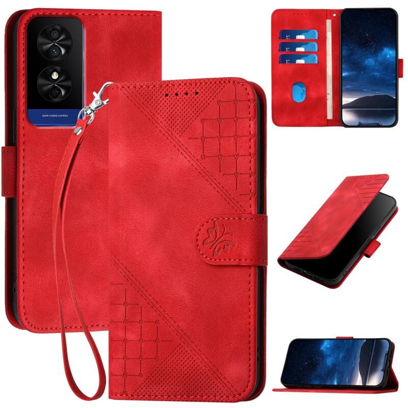 For TCL 50 5G / 50 XE / 50 XE NXTpaper Grid Butterfly Embossed Pattern Flip Leather Phone Case with Lanyard(Red)
