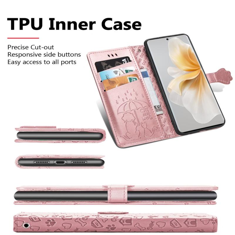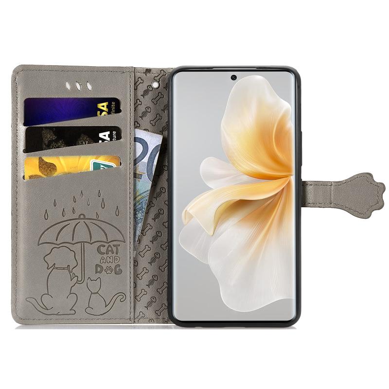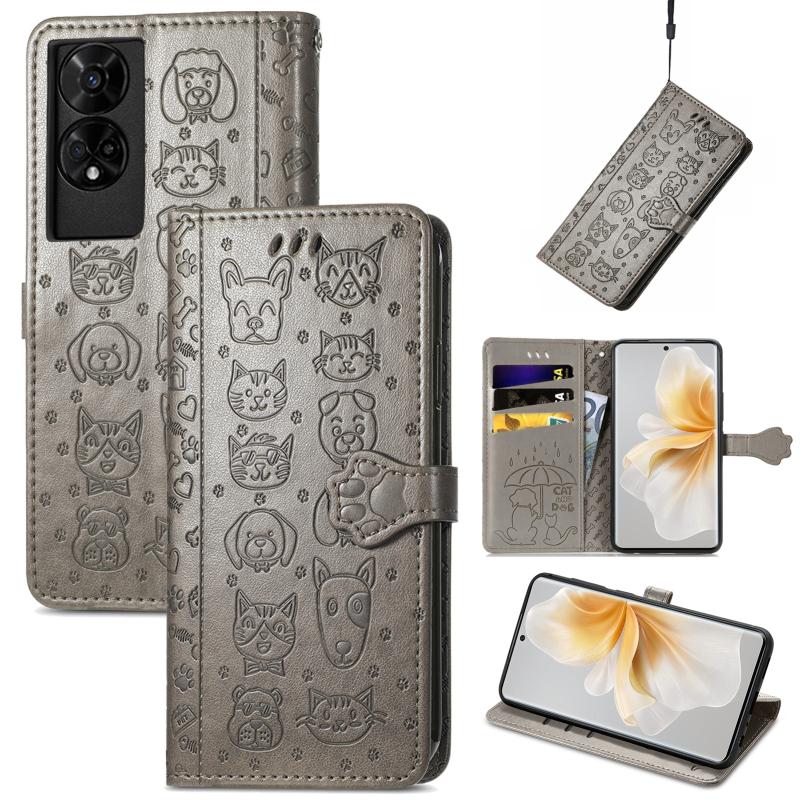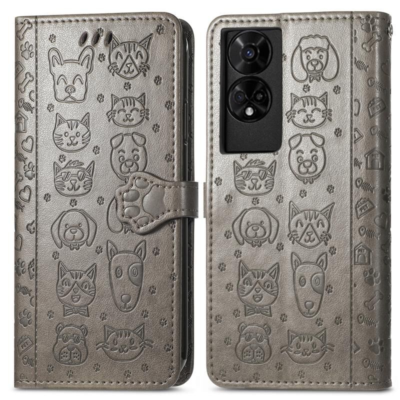 Θήκη Δερμάτινη με Χαρακτά Cat & Dog για TCL 50 5G (Γκρι)