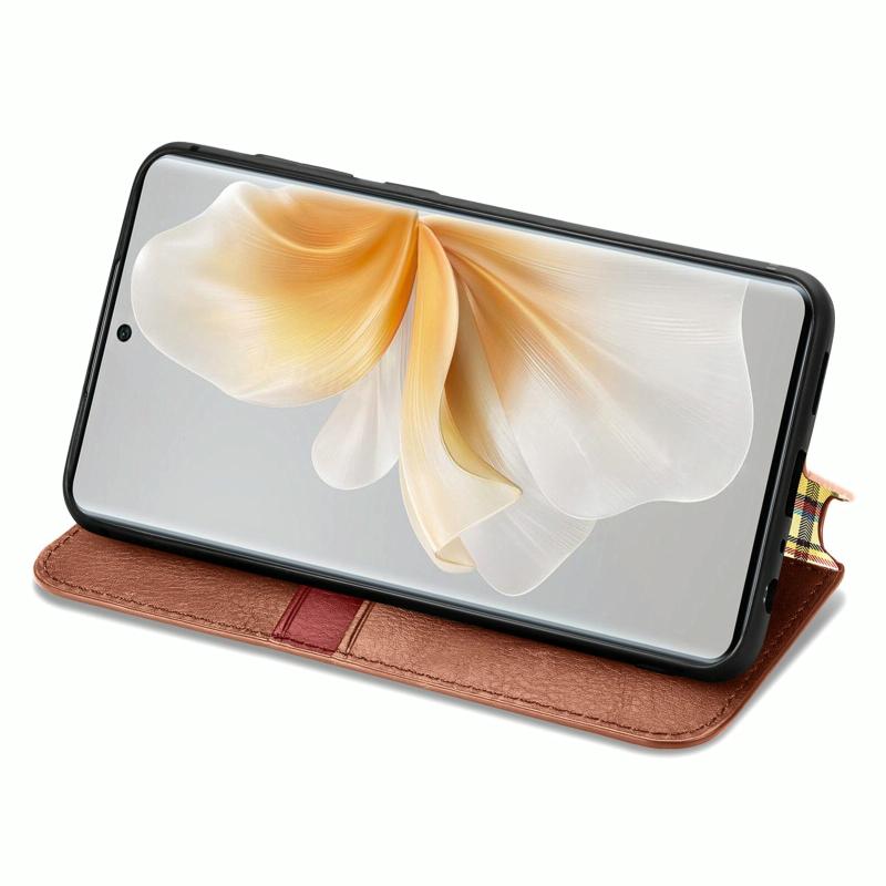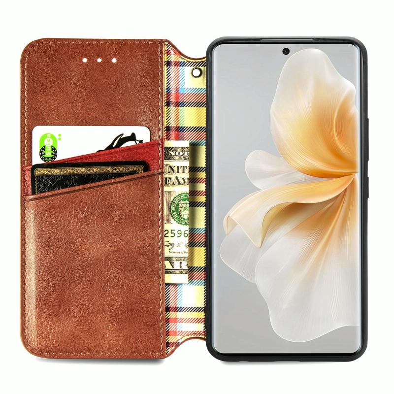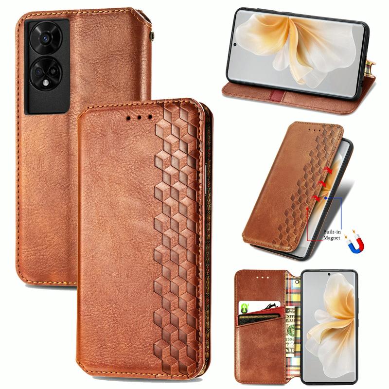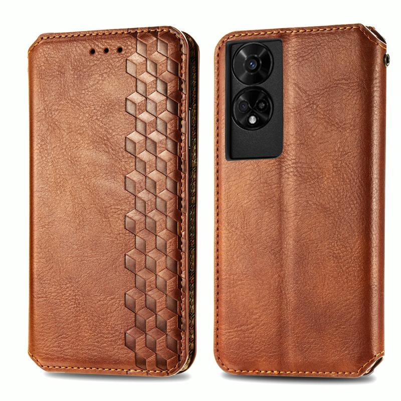 Θήκη Δερμάτινη Μαγνητική για TCL 50 5G με Υφή Cubic Grid (Καφέ)