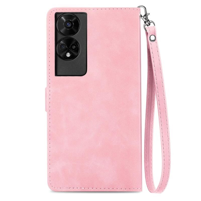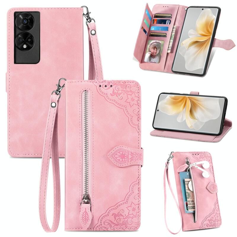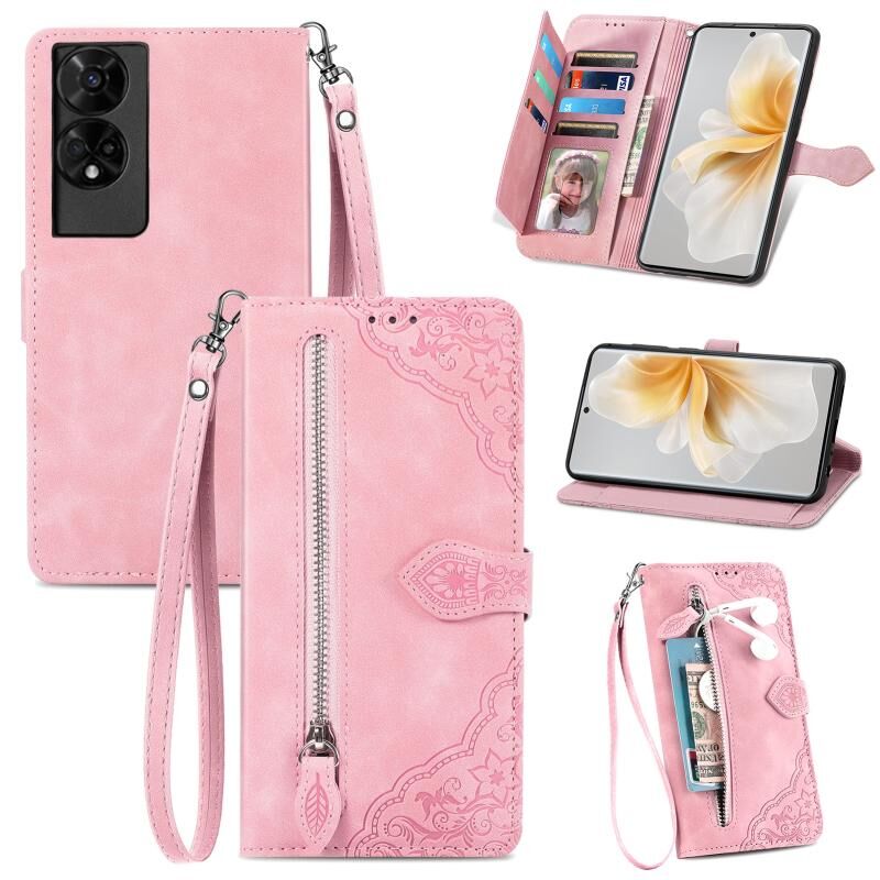 Για TCL 50 5G ανάγλυφο λουλούδι φερμουάρ δερμάτινη θήκη τηλεφώνου (ρόζ)