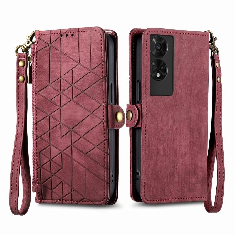 Για TCL 50 5G γεωμετρική φερμουάρ πορτοφόλι πλευρά πόρπη δερμάτινη θήκη τηλεφώνου (Κόκκινο)