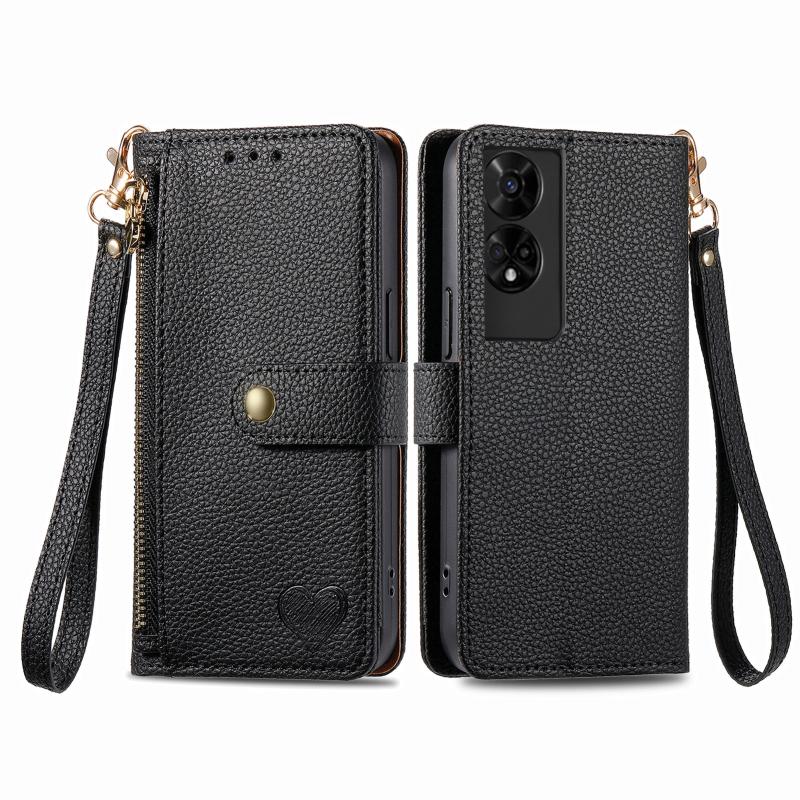 Θήκη κινητού TCL 50 5G Love Zipper Lanyard από δέρμα (Μαύρο)
