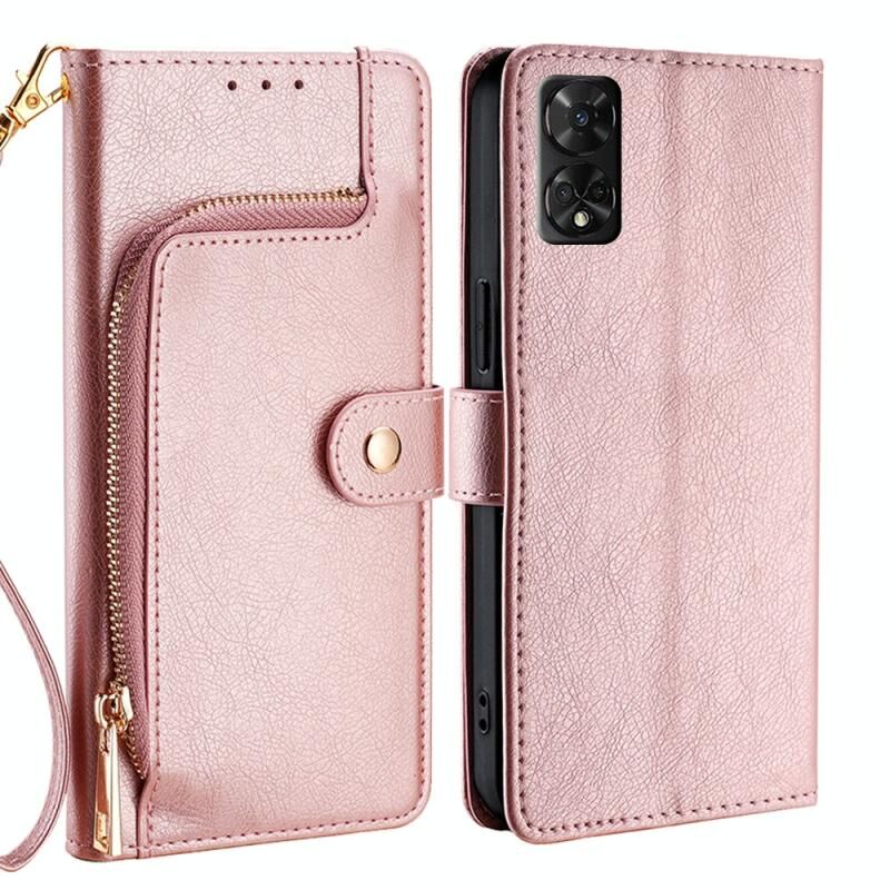 Για TCL 50 5G φερμουάρ τσάντα δερμάτινη θήκη τηλεφώνου (Rose Gold)