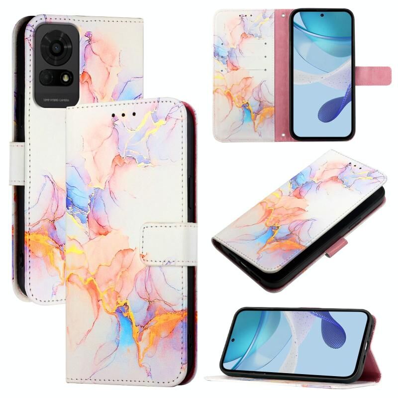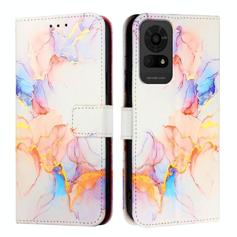 Θήκη τηλεφώνου TCL 50 LE PT003 από δέρμα με σχέδιο μαρμάρου και πτυσσόμενο καπάκι (Λευκό Γαλαξίας Μάρμαρο)
