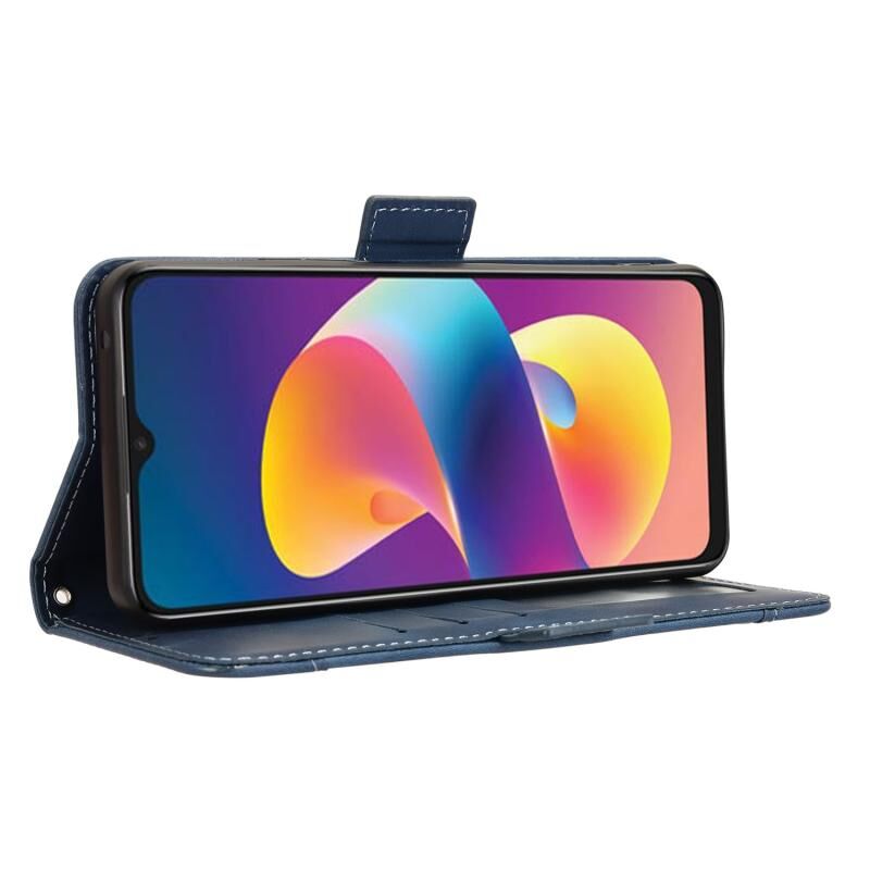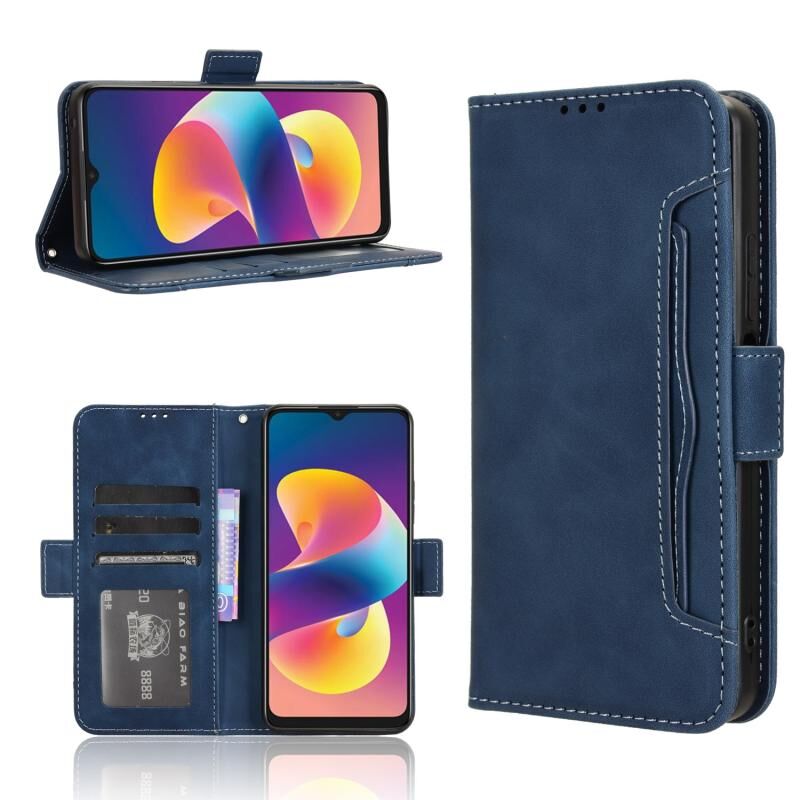 Για TCL 50 LE δέρμα αίσθηση μοσχάρι υφή κάρτα υποδοχές δερμάτινη θήκη τηλεφώνου (μπλε)