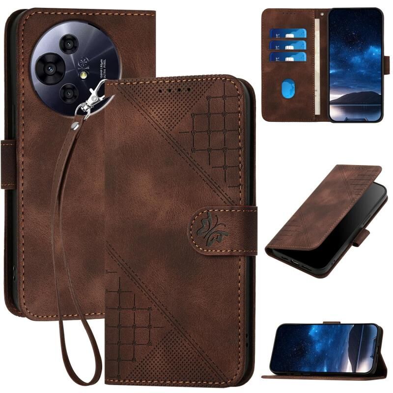 For TCL 50 NxtPaper Grid Butterfly Embossed Pattern Flip Leather Phone Case with Lanyard(Coffee)