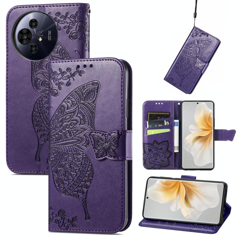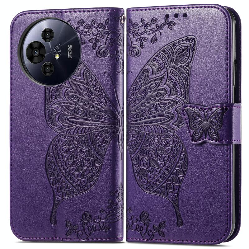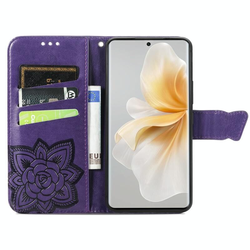 Θήκη Δερμάτινη με ανάγλυφο σχέδιο πεταλούδας για TCL 50 Pro NxtPaper (Μωβ)