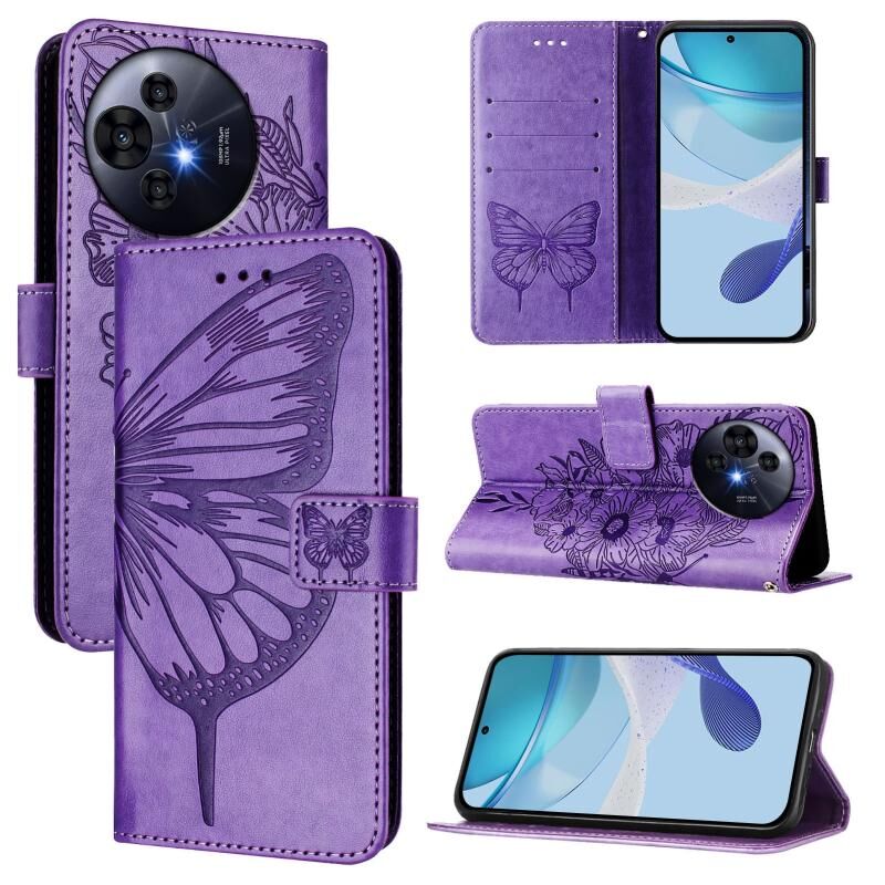 Θήκη τηλεφώνου TCL 50 Pro NxtPaper ανάγλυφο με σχέδιο πεταλούδας από δέρμα (Μαύρο)