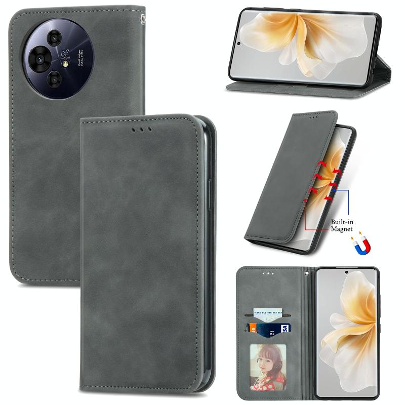 Θήκη Δερμάτινη Μαγνητική Flip για TCL 50 Pro NxtPaper με Υφή Retro (Γκρι)