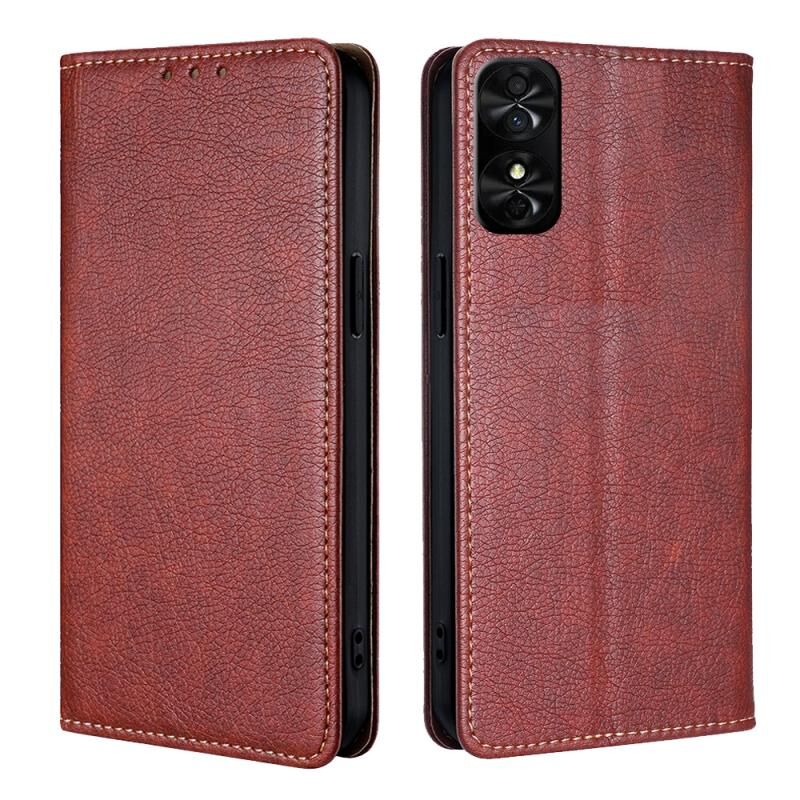 Για TCL 50 SE 4G Gloss Oil Solid Color Μαγνητική δερμάτινη θήκη τηλεφώνου (καφέ)