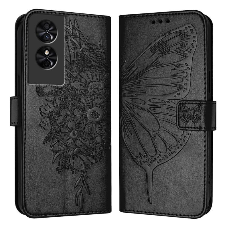 Θήκη τηλεφώνου δερμάτινη ανάγλυφο πεταλούδα για TCL 50 SE (Μαύρο)