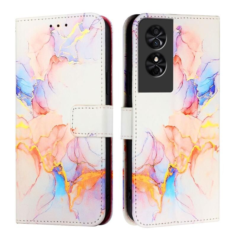 Θήκη τηλεφώνου TCL 50 SE PT003 από δέρμα με σχέδιο μαρμάρου και πτυσσόμενο μηχανισμό (Λευκό Γαλαξίας Μάρμαρο)