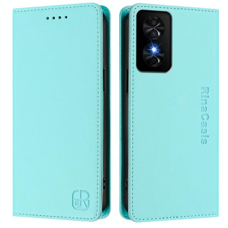 Θήκη τηλεφώνου δερμάτινη με μαγνητική απορρόφηση και προστασία RFID για TCL 50 SE RC01, διπλωμένη (Μέντας Πράσινο)