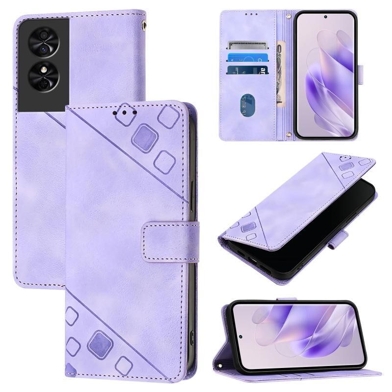 Για TCL 50 SE δέρμα αίσθηση ανάγλυφο δέρμα τηλέφωνο υπόθεση (Light Purple)