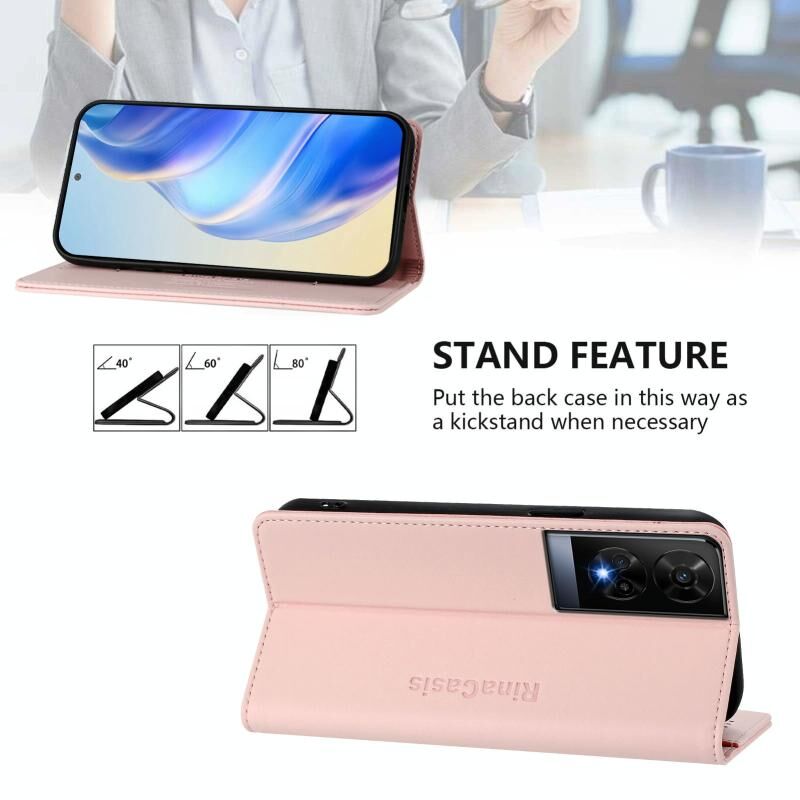 Θήκη τηλεφώνου δερμάτινη με μαγνητική απορρόφηση και προστασία RFID για TCL 50 XE RC01, διπλού τύπου (ρόζ)