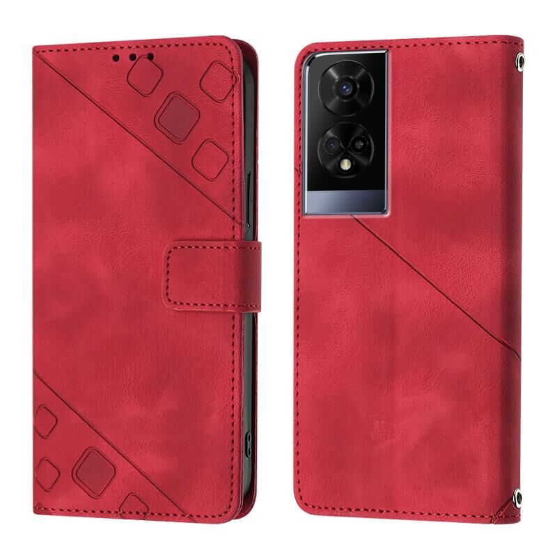 Για TCL 50 XE δέρμα αίσθηση ανάγλυφο δέρμα τηλέφωνο υπόθεση (κόκκινο)