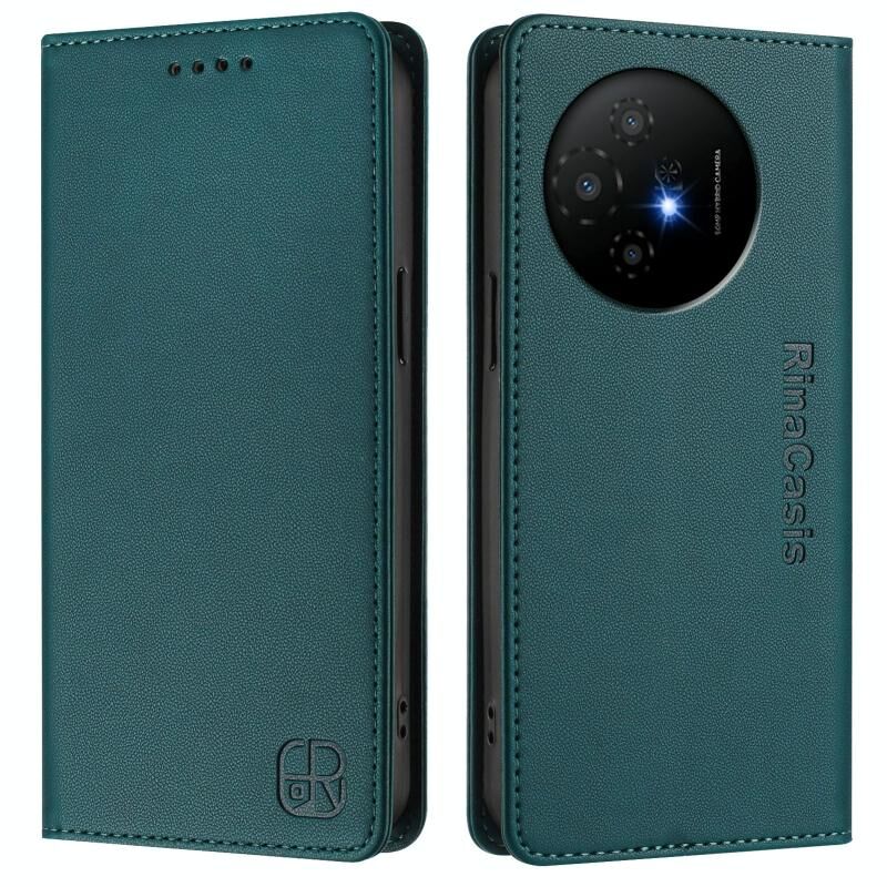 Θήκη τηλεφώνου δερμάτινη με μαγνητική απορρόφηση RFID για TCL 50 XL 5G RC01, διπλωμένη (Μέντας Πράσινο)