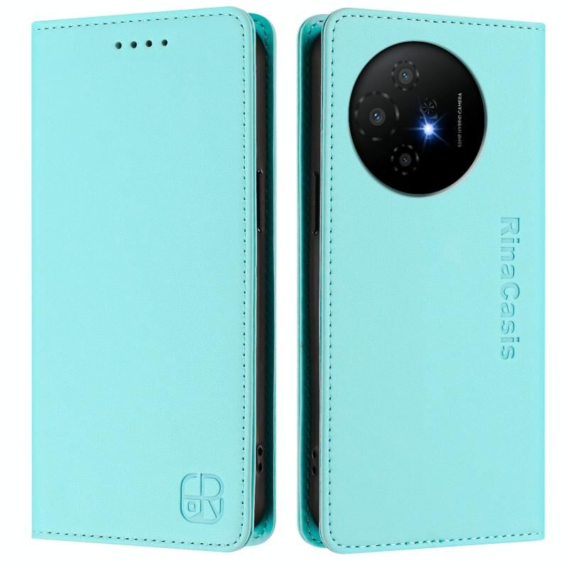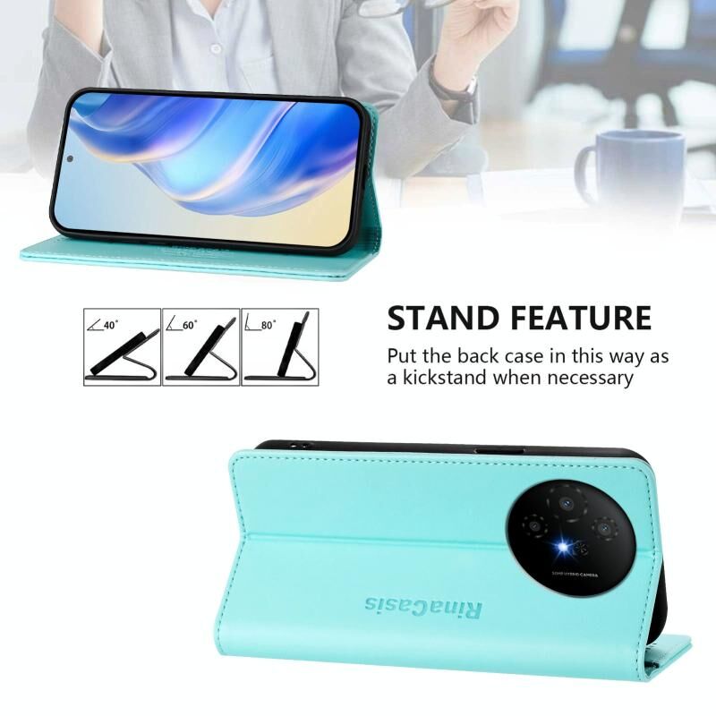 Θήκη τηλεφώνου δερμάτινη με μαγνητική απορρόφηση RFID για TCL 50 XL 5G RC01, διπλωμένη (Μέντας Πράσινο)