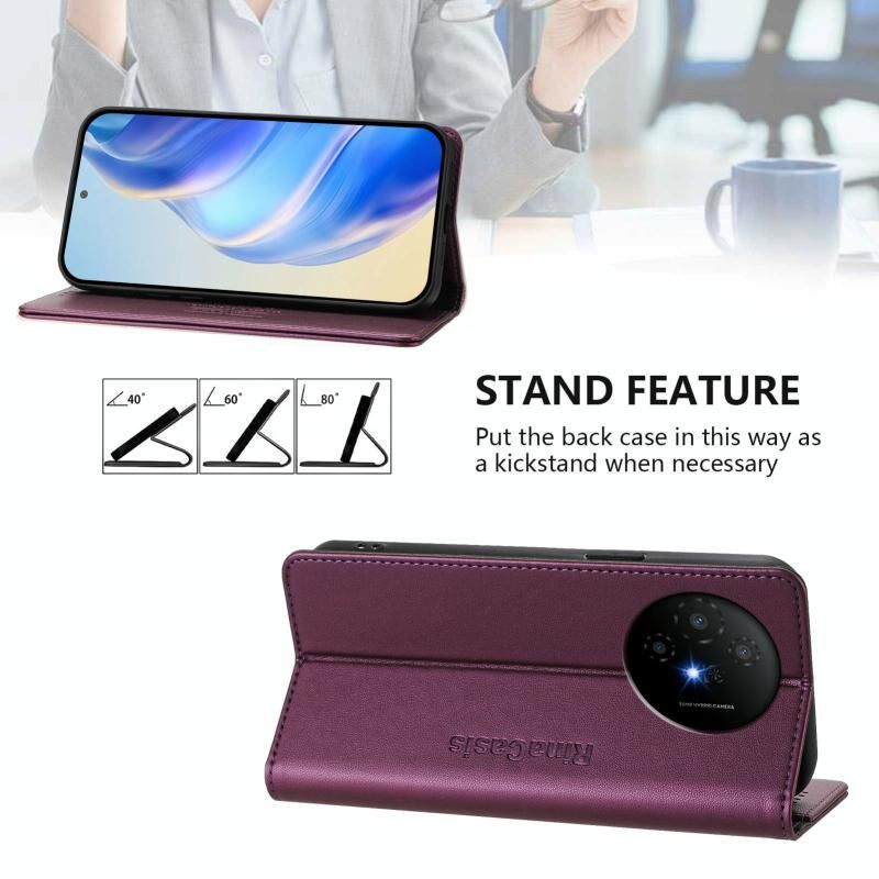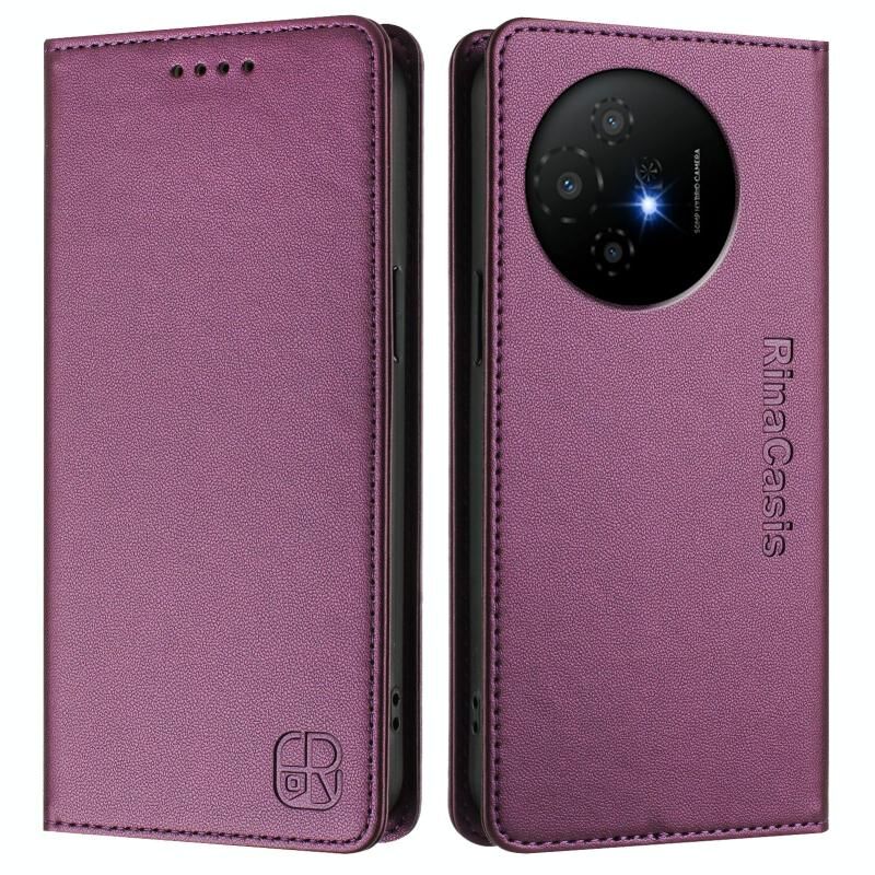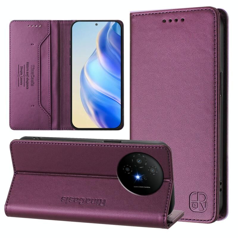 Θήκη τηλεφώνου δερμάτινη με μαγνητική απορρόφηση RFID για TCL 50 XL 5G RC01, διπλωμένη (Βιολετί)