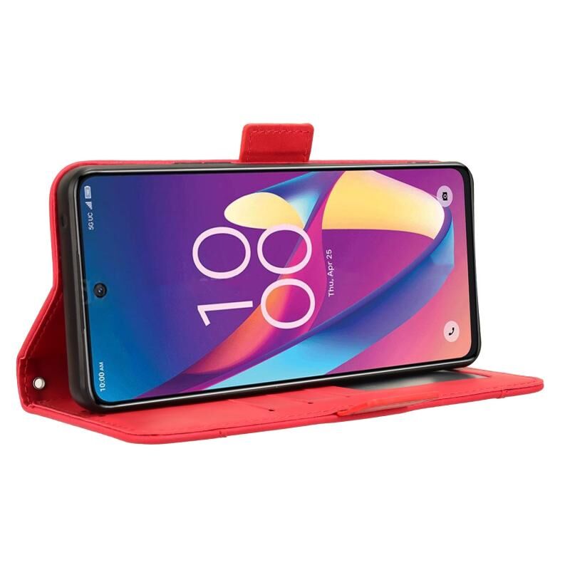 Για TCL 50 XL 5G δέρμα αίσθηση μοσχάρι υφή κάρτα υποδοχές δερμάτινη θήκη τηλεφώνου (κόκκινο)