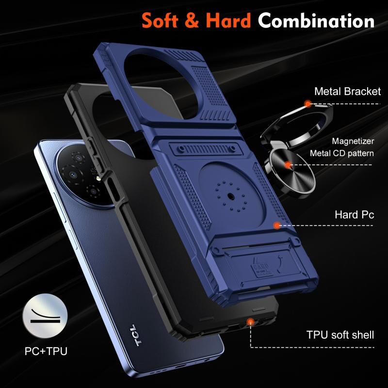 Για το TCL 50 XL 5G TPU Hybrid PC Shockproof κάρτα τηλέφωνο υπόθεση με μεταλλικό δαχτυλίδι κάτοχος (μπλε)