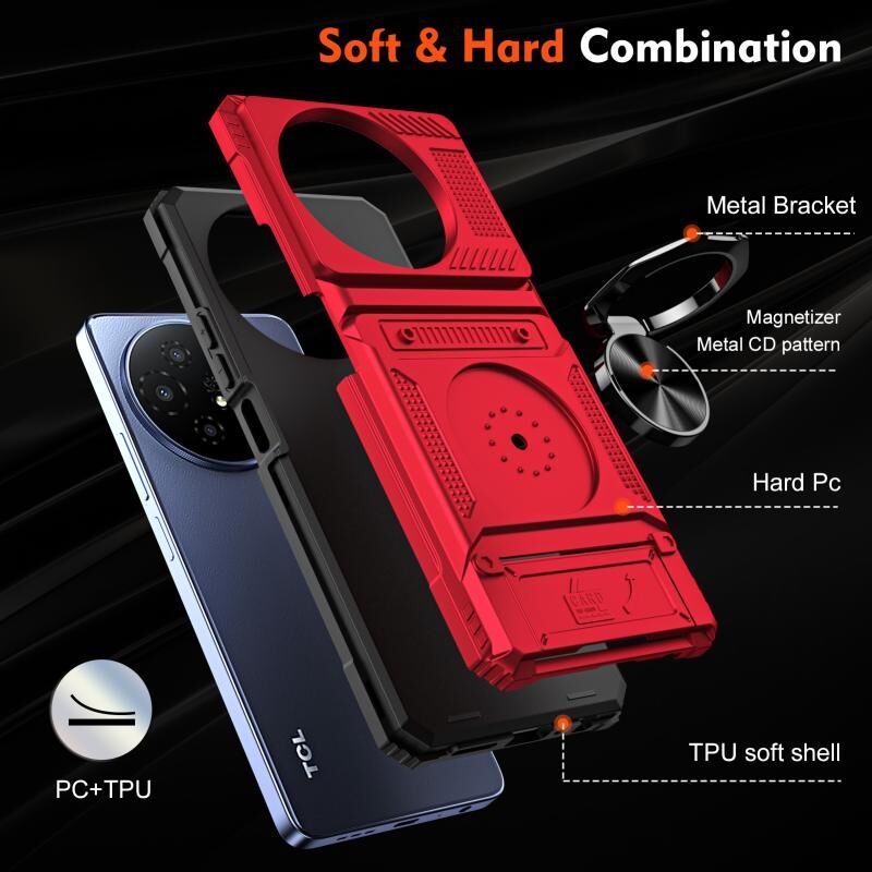 Για το TCL 50 XL 5G TPU Hybrid PC Shockproof κάρτα τηλέφωνο υπόθεση με μεταλλικό δαχτυλίδι κάτοχος (κόκκινο)