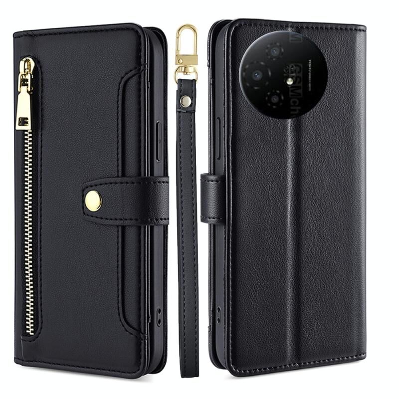 Για TCL 50 XL Πρόβατα Υφή Cross-body φερμουάρ πορτοφόλι δερμάτινη θήκη τηλεφώνου (μαύρο)