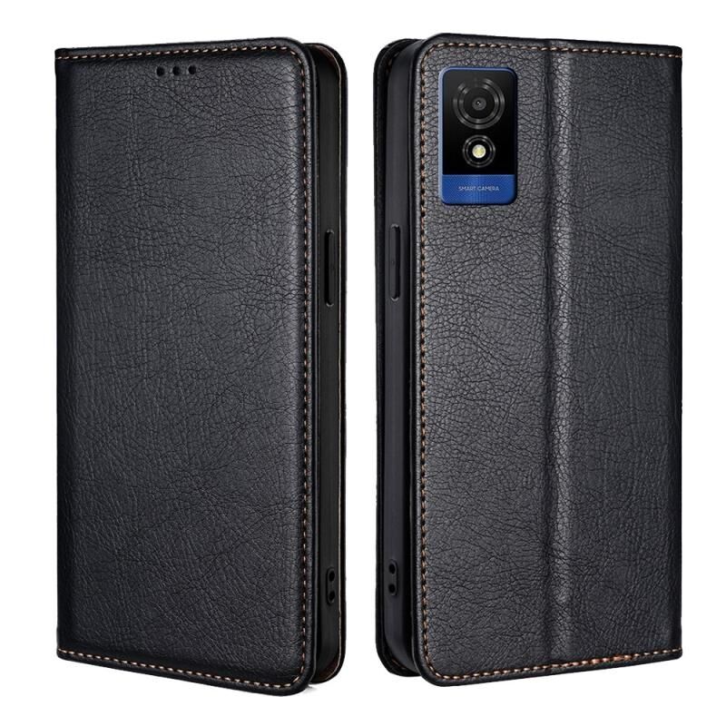 Για το TCL 501 4G Gloss Oil Solid Color Μαγνητική δερμάτινη θήκη τηλεφώνου (Μαύρο)